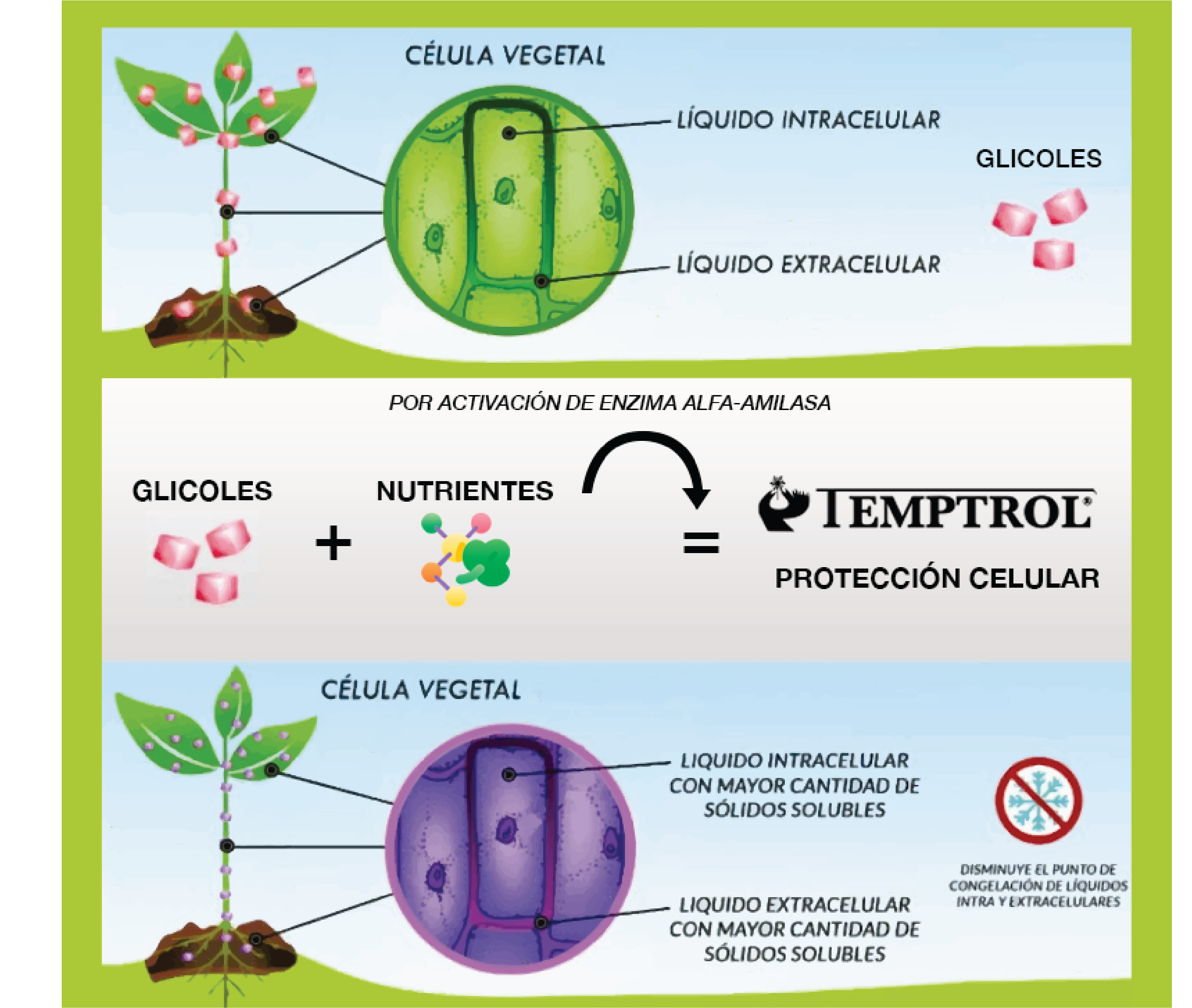 Actúa como un escudo que hace que la célula de la planta resista condiciones de congelamiento y estrés, como son las generadas por bajas de temperatura.